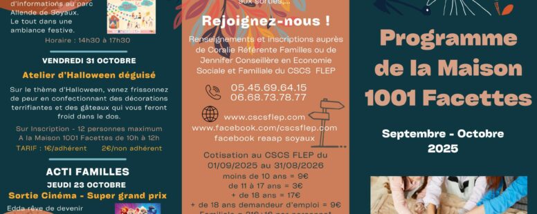 Programmation de la Maison 1001 facettes pour la période de septembre – octobre
