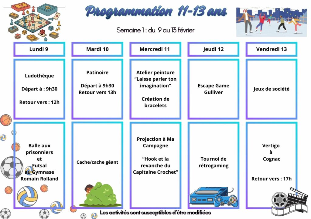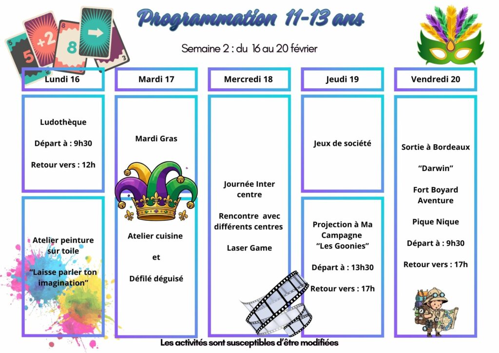 Inscriptions 11/13 ans vacances de février