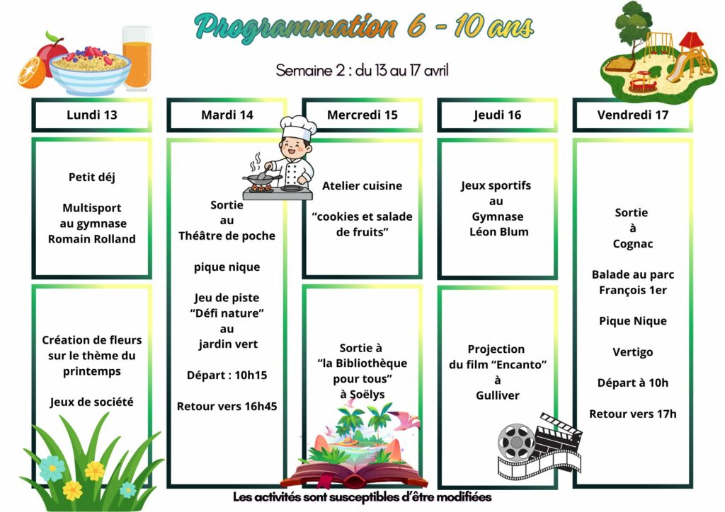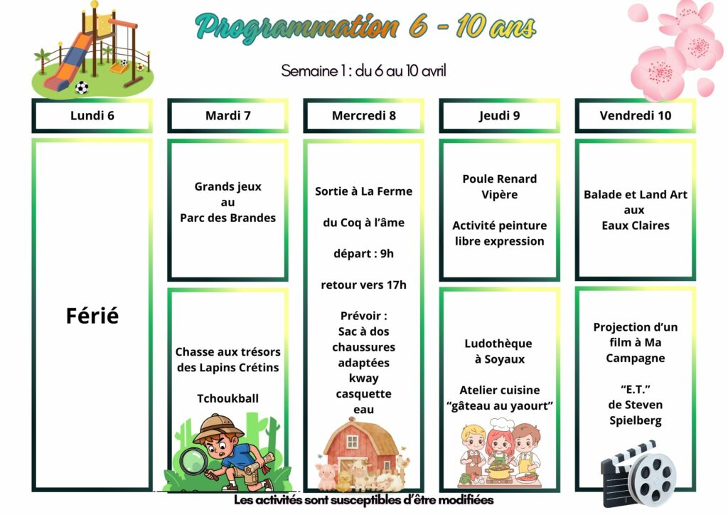 Inscriptions 6/10 ans vacances d’Avril