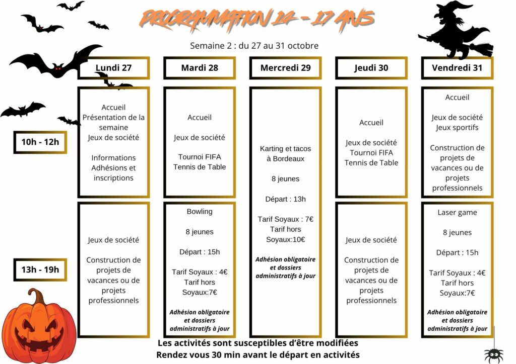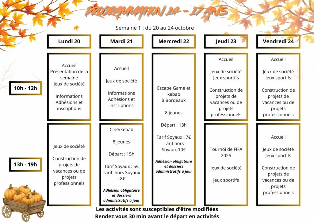 Inscriptions vacance d’Automne 14-17 ans